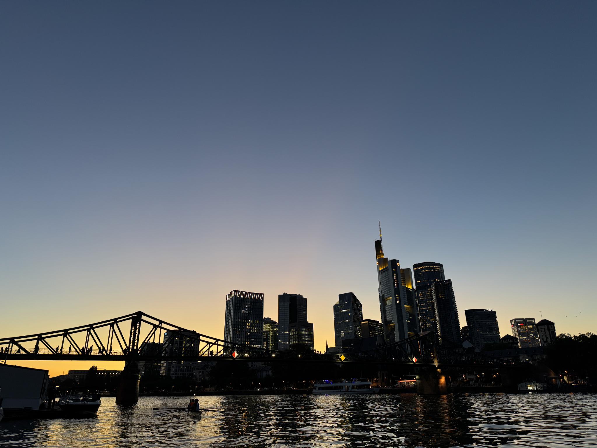 Beginnend mit der untergehenden Sonne am Abendhimmel startet ein Farbspiel hinter nahezu schwarz kontrastierenden Hochhäusern. Bis irgendwann alles um einen herum fast schwarz wirkt, wären da nicht die beleuchteten Brücken und Straßenlaternen.